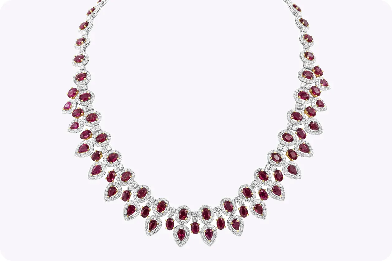 Jewelry craftsmanship: Ruby necklaces often involve advanced gemstone setting techniques.